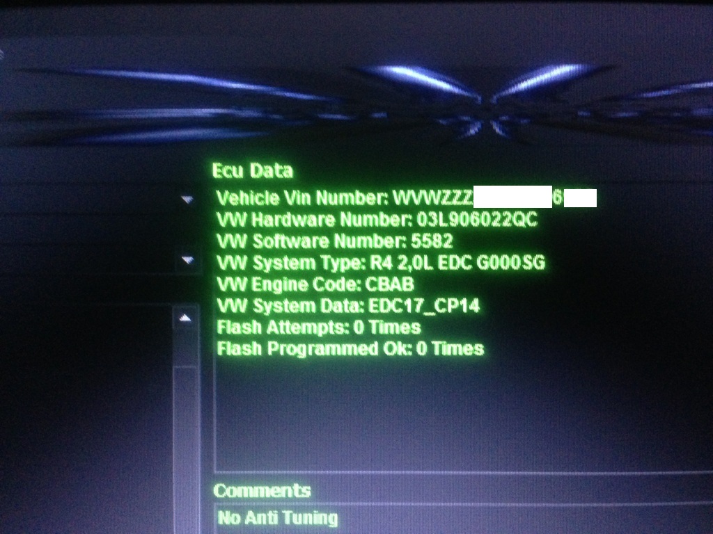 1) Successfully reading Bosch edc17 cp14 passat tdi cr dpf 140hp 2009.5 model year, picture is taken below: