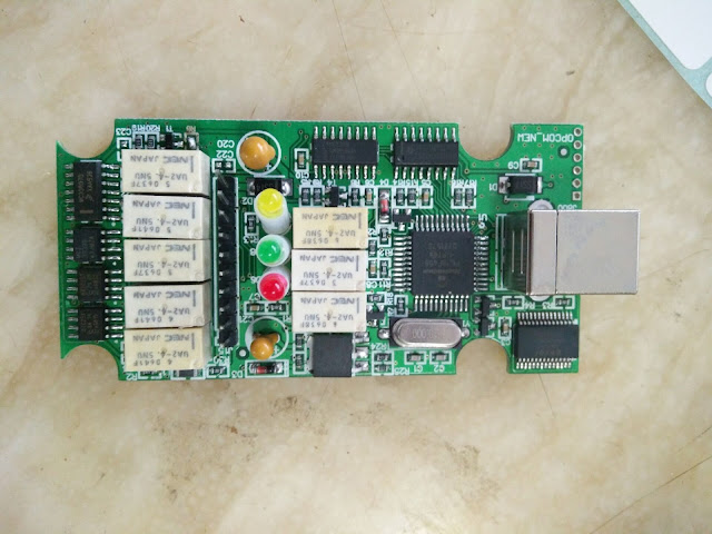 Opel Opcom china clones are different from the PCB design but have the same functions via vaux-com software.